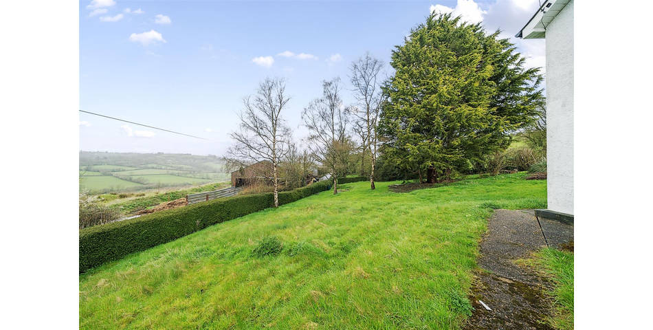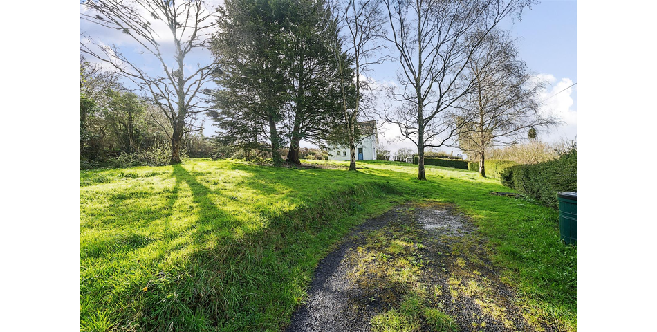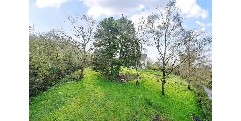 The large plot extends in all to 0.255 acres (0.1 ha) with parking for one car. The sloping lawns are interspersed with trees and hedging to three sides and a small stream along the bottom. There is a useful timber shed.
