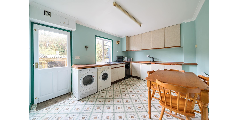 This semi-detached home is positioned at the top of it's large garden with fantastic views across the valley. Now in need of modernisation and updating, the property provides a fantastic blank canvass to make improvements, with rendered elevations, thought to be brick, under a likely asbestos slate style roof, the property as metal frame single glazed windows. The accommodation includes an entrance hall with stairs to the first floor, sitting room with fantastic views and feature fireplace, as well as a kitchen/breakfast room with door to the rear and a larder. On the first floor are three bedrooms (two overlooking the front and views), as well as a family bathroom.
