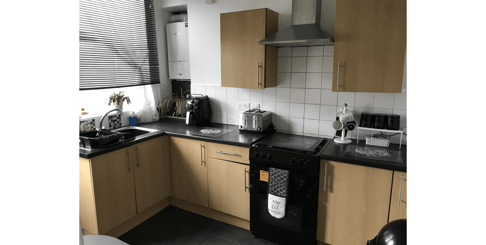 3.1m x 2.4m With uPVC double glazed windows to rear and side, radiator, under stairs storage cupboard. Fitted kitchen comprising of range of base and drawer units, inset 1 ½ bowl sink, matching eye level cabinets, space and plumbing for washing machine, gas fired boiler.