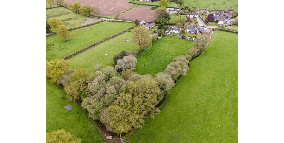 Down to pasture, at the bottom of the paddock is a fenced off area of deciduous woodland with a pond.